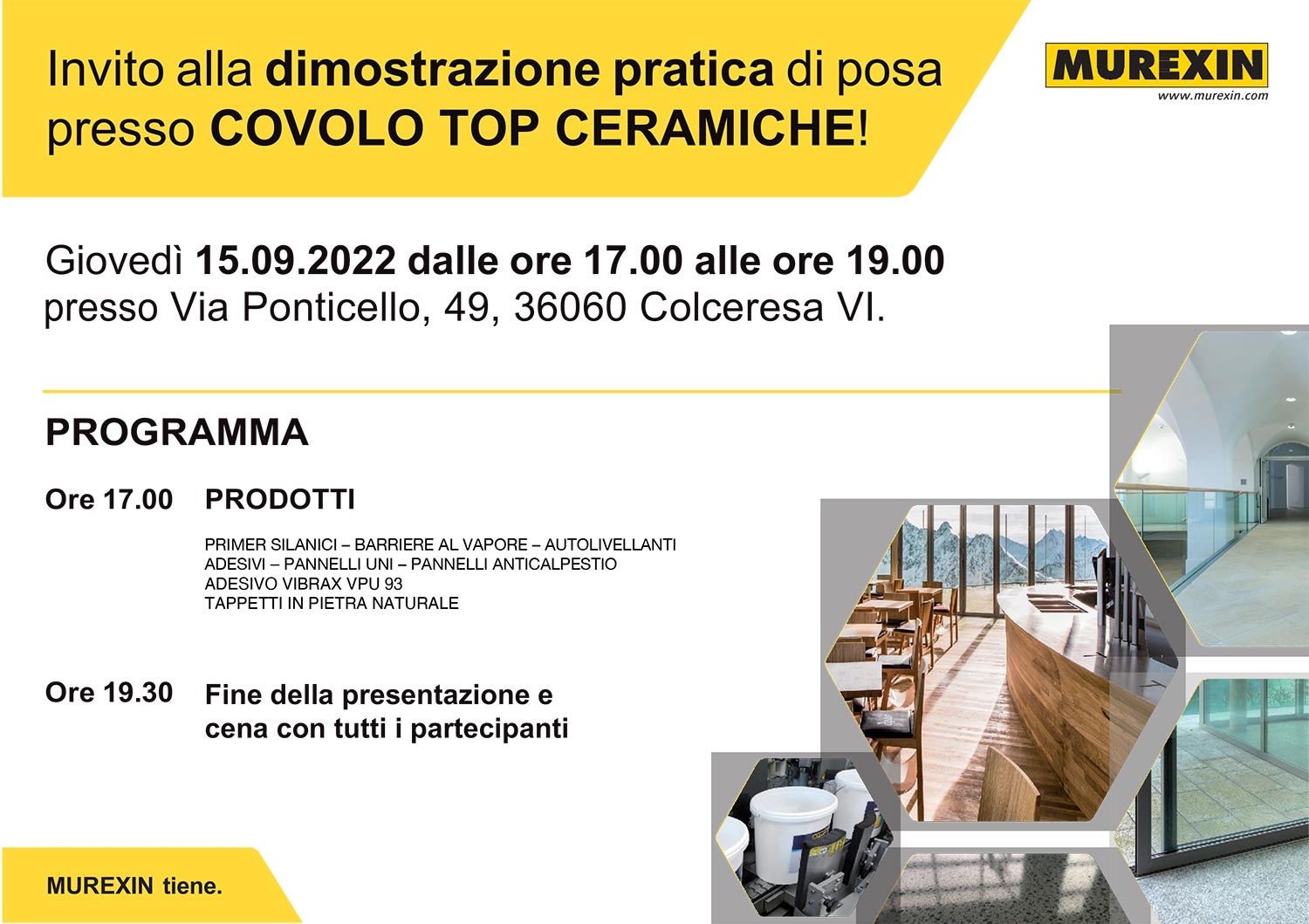 Presso la nostra sede di Colceresa abbiamo organizzato, in collaborazione con Murexin, un evento dedicato alla formazione dei nostri posatori e professionisti del settore.La giornata è stata un’occasione per scoprire e sperimentare diverse soluzioni innovative per la posa, dai primer silanici e barriere al vapore agli autolivellanti, dagli adesivi speciali ai pannelli UNI e anticalpestio, fino ai tappeti in pietra naturale e all’adesivo VibrAx VPU 93.
